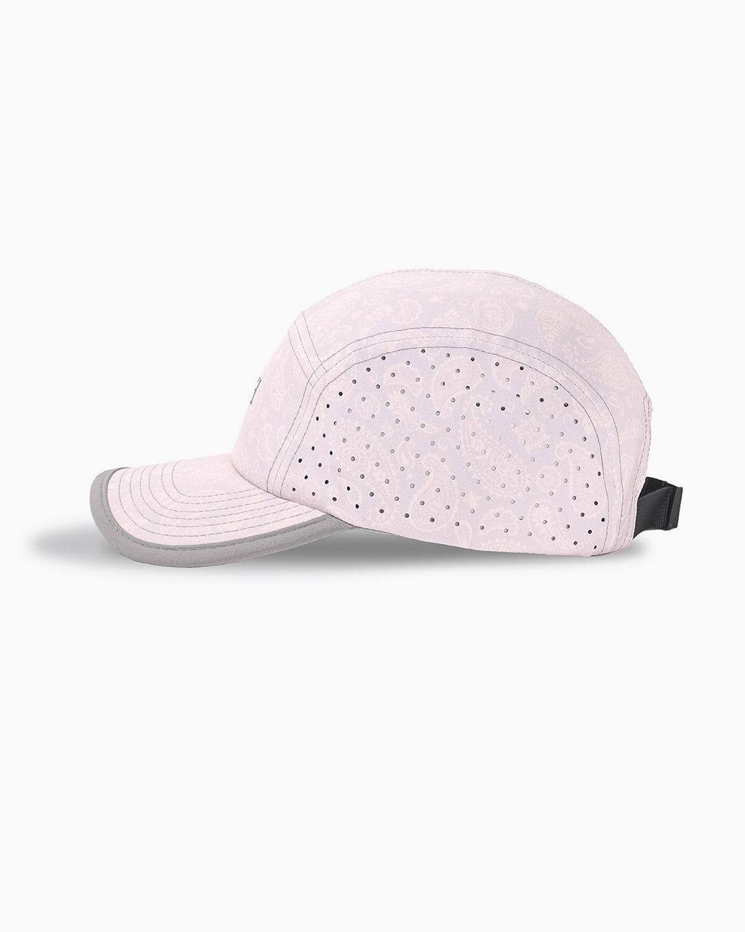 Our runner's cap showcases a custom paisley flower print on lightweight nylon material. It's the perfect hat for any activity.